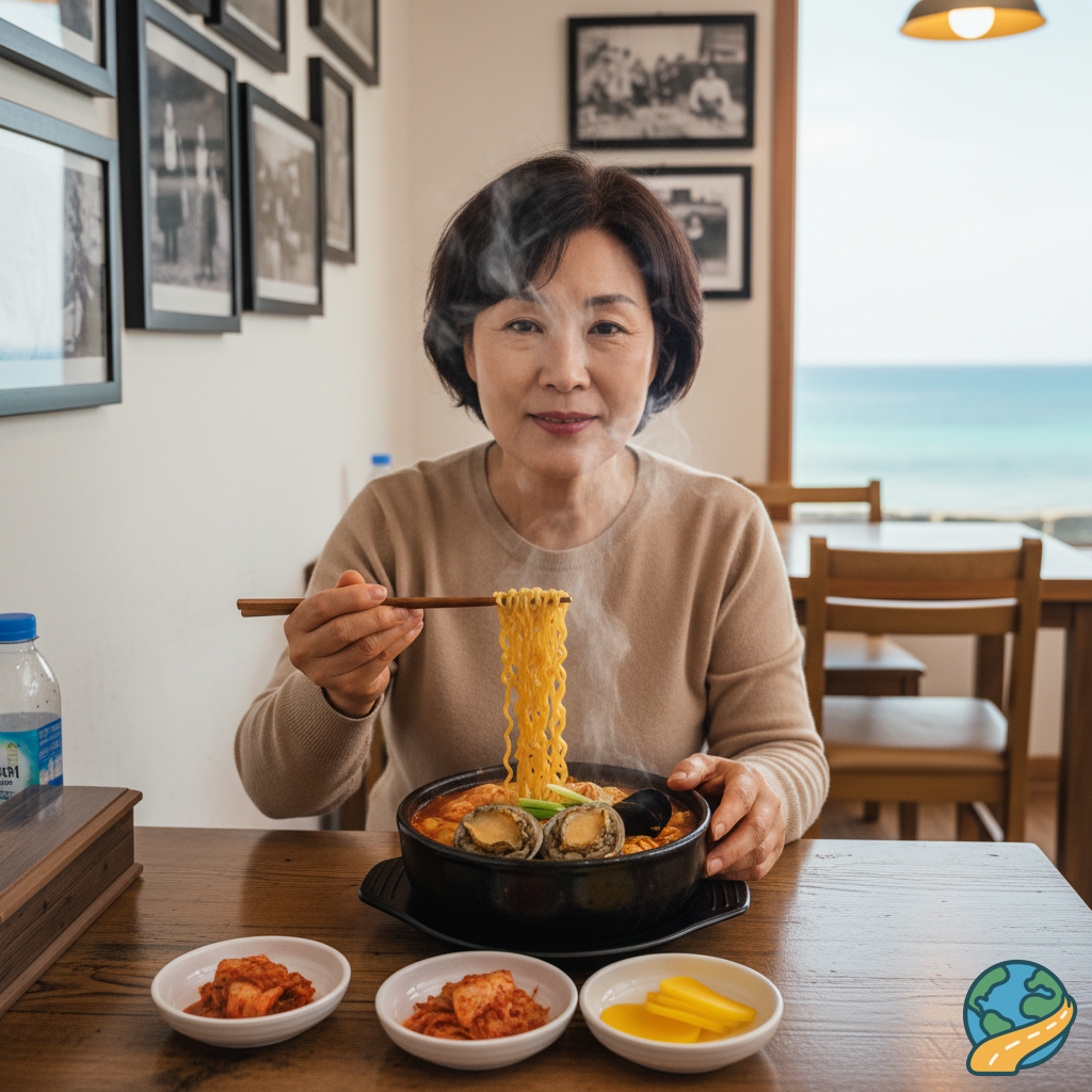 특징: 해녀들이 직접 잡은 전복, 소라, 해산물로 만든 해물라면이 인기 메뉴예요.
